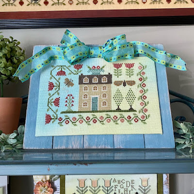 As for decorating....I know lots of people have moved on to patriotic... and I have plans to do the same... in another week or so... haven't had the motivation yet... in the meantime I'm enjoying my Spring-y decor... a mix of my favorite cross stitch designers... Blackbird Designs, With Thy Needle & Thread, From the Heart Needleart, Barbara Ana Designs, Pineberry Lane... and some vintage McCoy and Shawnee pottery mixed in.